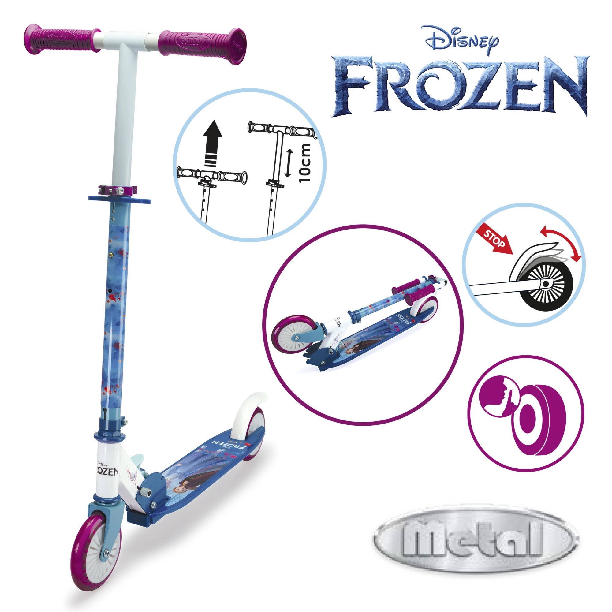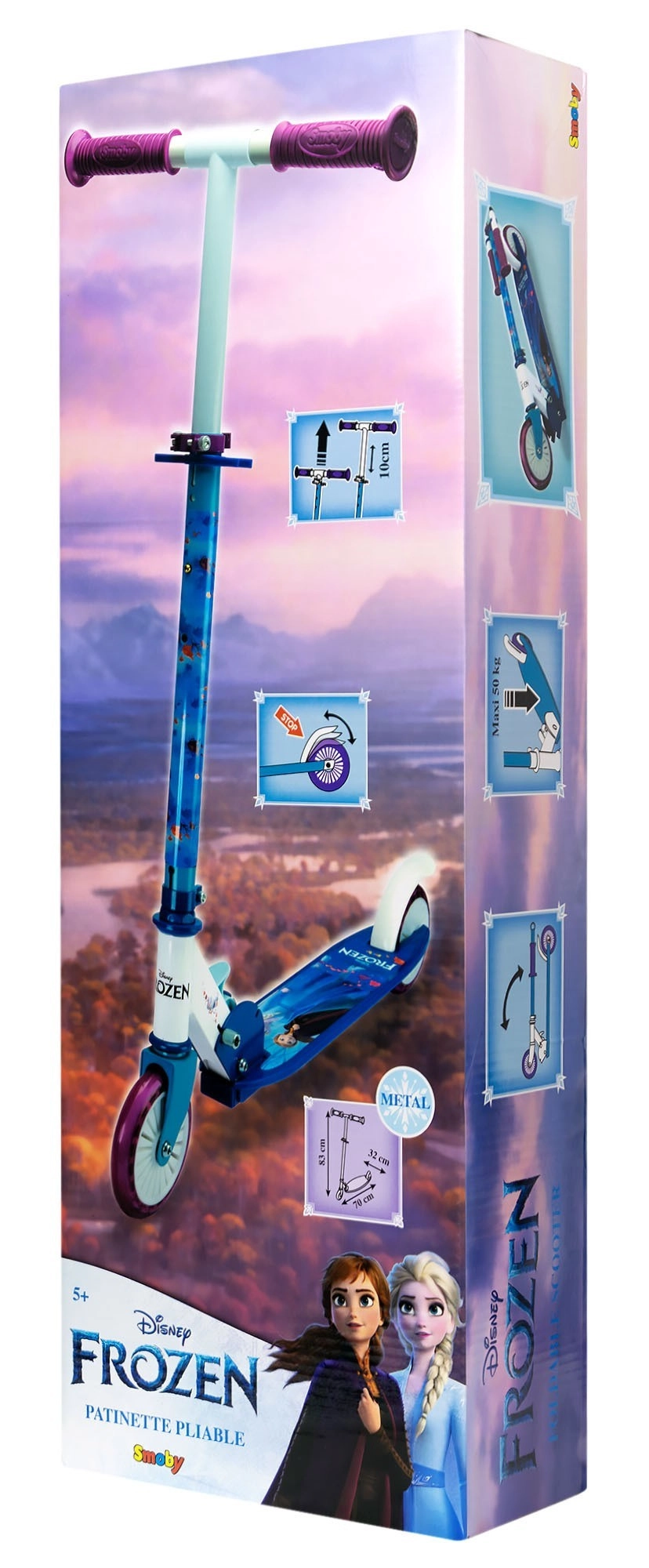 Ez a kétkerekű roller a DISNEY FROZEN népszerű szereplőivel vonzó dizájnt és egyben biztonságos felépítést kínál a kis motorosoknak. A alumínium váznak köszönhetően a roller nagyon könnyű és könnyen hordozható, ugyanakkor elég erős a mindennapi használathoz. Az összecsukható mechanizmus megkönnyíti a tárolást és a szállítást.