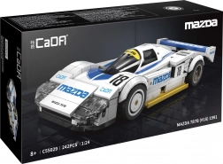 Ez a minőségi CaDA építőkészlet valósághű MAZDA 787B modellt kínál fehér karosszériával és kék–sárga részletekkel. A precíz részleteknek és a masszív felépítésnek köszönhetően játékra és polcos kiállításra egyaránt alkalmas. Az összeszerelt autó méretei: 17,5 × 7,4 × 4 cm.
