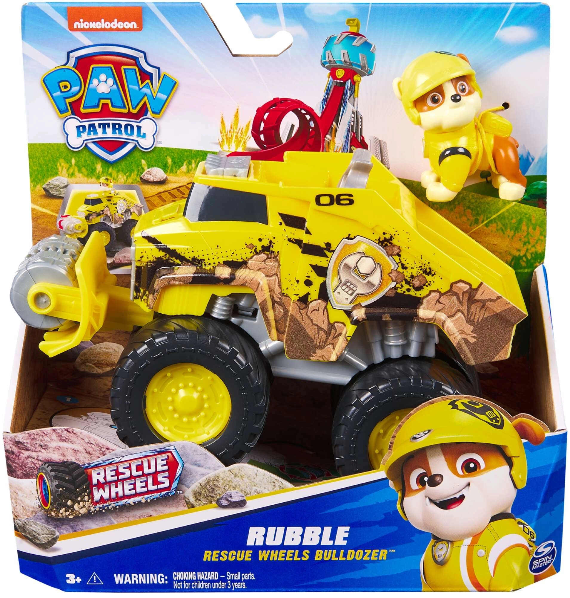 A bátor bulldog, Rubble figurája könnyen a vezetőülésbe helyezhető. A tartós műanyag kivitel, a feltűnő sárga szín és a tematikus matricák serkentik a fantáziát és új küldetésekre hívnak. A játék kompatibilis a sorozat további készleteivel, így a gyerekek bővíthetik mentőflottájukat.