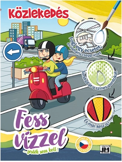 A varázslatos Fess vízzel kifestő a közlekedés témakörében rendetlenség nélküli szórakozást nyújt a gyerekeknek – a színezéshez elég egy ecset és pár csepp víz. A magyar kiadás 23 A4-es méretű képet tartalmaz, amelyek benedvesítés után színes látványvilággá változnak. Ideális a finommotorika, a koncentráció és a kreativitás fejlesztésére. Nincs szükség festékekre, gyors és tiszta szórakozás, valamint nagy A4-es oldalak az egyszerű festéshez.