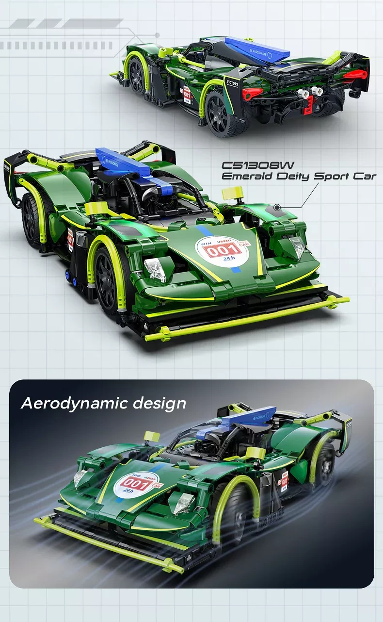 A PHANTOM WING sportautó ikonikus zöld színben részletgazdag kidolgozással és egyenletes menetdinamikával nyűgöz le. A kétmódú vezérlésnek köszönhetően választhatsz a klasszikus 2,4 GHz-es távirányító és a több vezetési móddal rendelkező mobilalkalmazás (Android/iOS) között. Az elemek kompatibilitása más építőkészletekkel végtelen bővítési lehetőségeket biztosít.