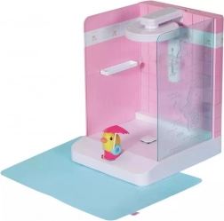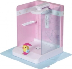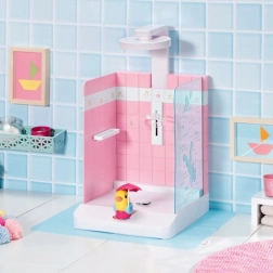 A praktikus babatartó biztonságosan a helyén tartja a BABY born babát és a nagyobb testvérbabát is, míg a állítható zuhanymagasság mindkét mérethez igazodik. A csomag része a fröccsenésgátló alátét is, amely szárazon tartja a környezetet. Az elegáns, rózsaszín csempés dizájn remekül illik a Fürdőszoba kollekció kiegészítőihez.