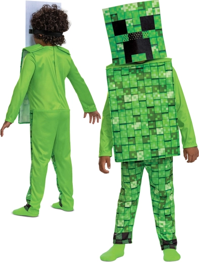 A különálló, dobozformájú törzsrész és a jelmezfej megtartja az alakját, könnyen felvehető, és megteremti a Creeper ikonikus sziluettjét.