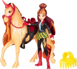 Cinder tüzes árnyalatú sörényével és farkával hívja fel magára a figyelmet, részletgazdag nyereggel és kantárral a lovas stabil ültetéséhez. A készletben fésű is található, mellyel a gyerekek formázhatják a sörényt és a farkat, még több fantáziát adva a játéknak.