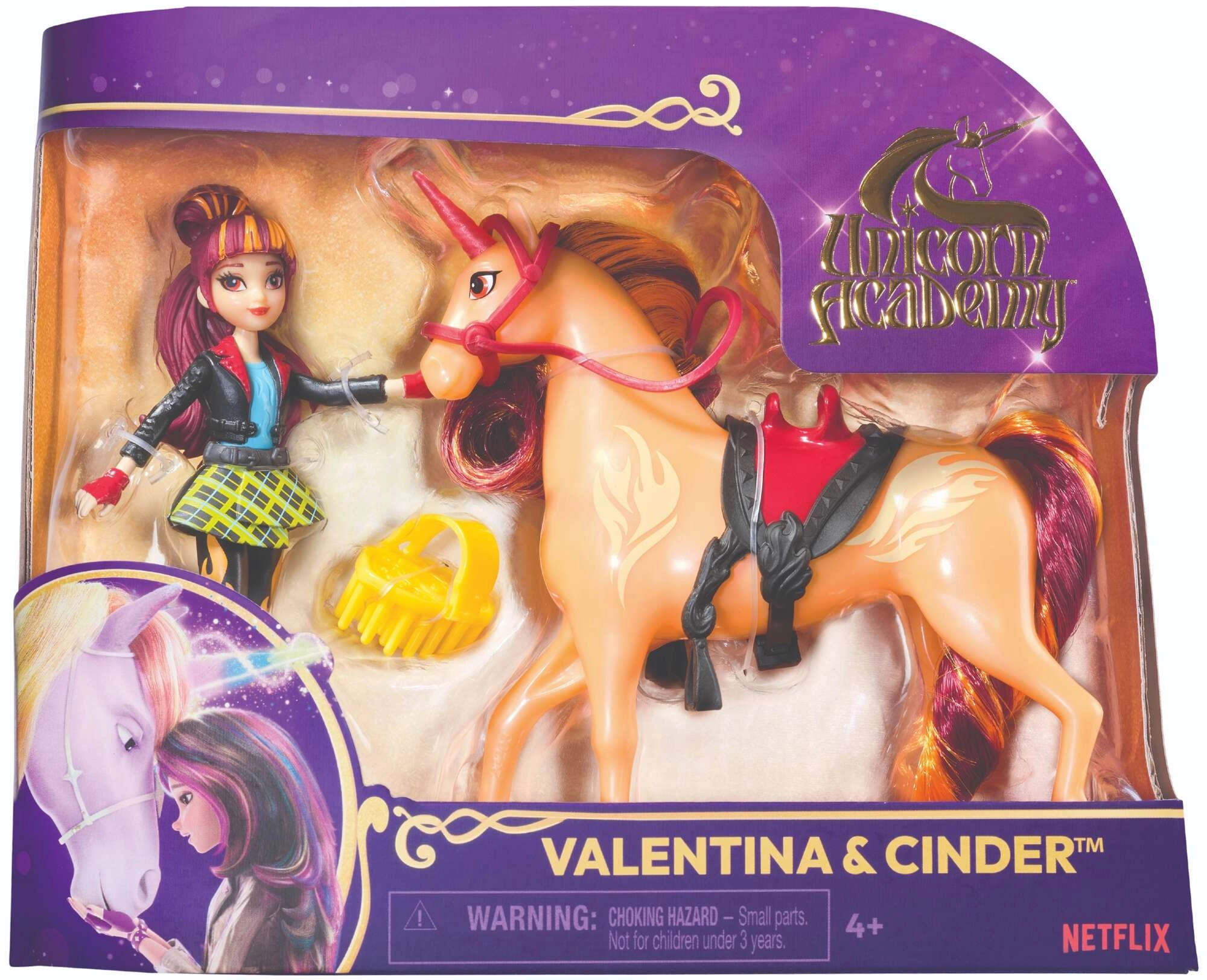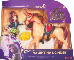 A Spin Master Valentina & Cinder szettje a népszerű UNICORN ACADEMY animációs sorozat által inspirált. A gyerekek újra átélhetik a kalandokat a Sparkle Lake tónál, erősíthetik a barátságokat és felfedezhetik az egyszarvúk mágikus képességeit. A baba a sorozatra jellemző öltözéket visel, és a mozgatható végtagoknak köszönhetően könnyedén különböző nyeregpozíciókat vesz fel.