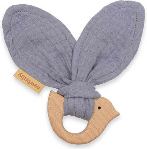 Praktikus és gyengéd New Baby Bird madárkás baba rágóka szürke muszlin pelenkával, amely megkönnyebbülést nyújt a fogzás idején. Öko bükkfa és puha, organikus muszlinpamut kombinációja a biztonságos és kellemes rágáshoz és ölelgetéshez. Remekül harmonizál más muszlin termékekkel, és ideális ajándékötlet újszülöttek számára.