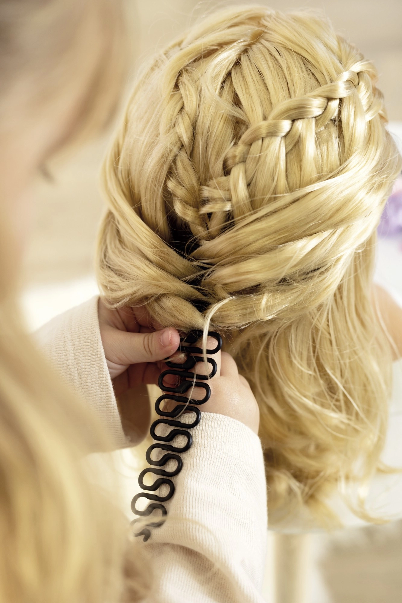 - 19 kiegészítő a csomagban – kefe, fésű, hajgumik, csatok, hullámcsatok, fonóeszközök és egyebek.