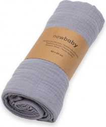 A könnyű és finom muszlin takaró NEW BABY elegáns szürke színben ideális a mindennapi használathoz. 100% organikus pamutból készült, puha és légáteresztő, egész éves használatra alkalmas, és remekül illik a márka további muszlin termékeihez.