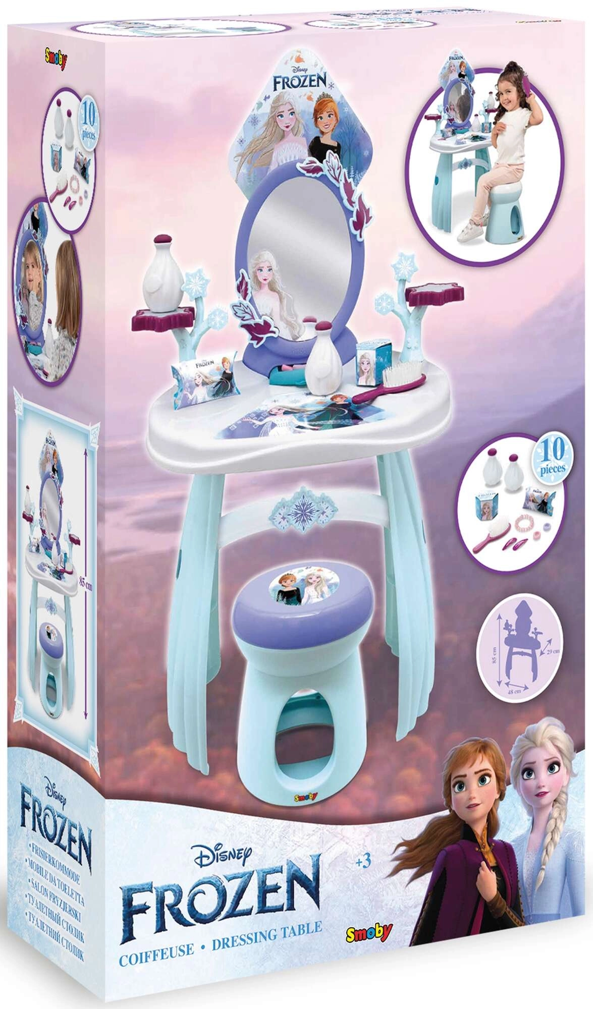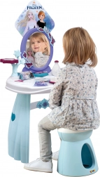 A FROZEN világából ihletett fésülködőasztal minden kis hercegnőt elbűvöl. A stabil műanyag szerkezet, a sima élek és a biztonságos tükör a biztonságos játékot támogatják, míg a praktikus szék kényelmes ülést biztosít fésülködéshez és díszítéshez. Az asztallapon tárolófelületek és tartók találhatók, hogy minden kéznél legyen.