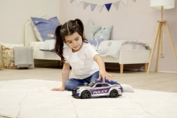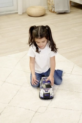 A masszív műanyag karosszériának és a nagy kerekeknek köszönhetően az autó stabil, és készen áll a mindennapos beltéri játékra. Ideális ajándék a kis akció- és sebességkedvelőknek.