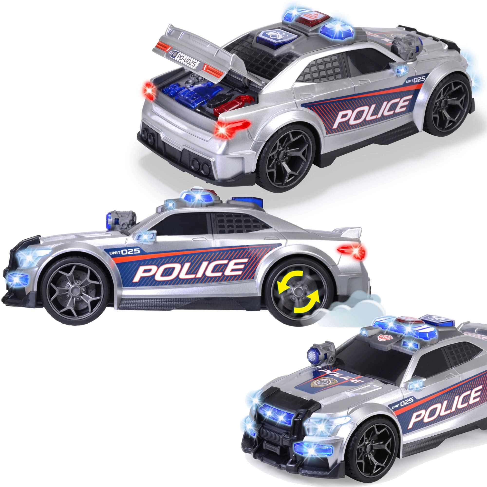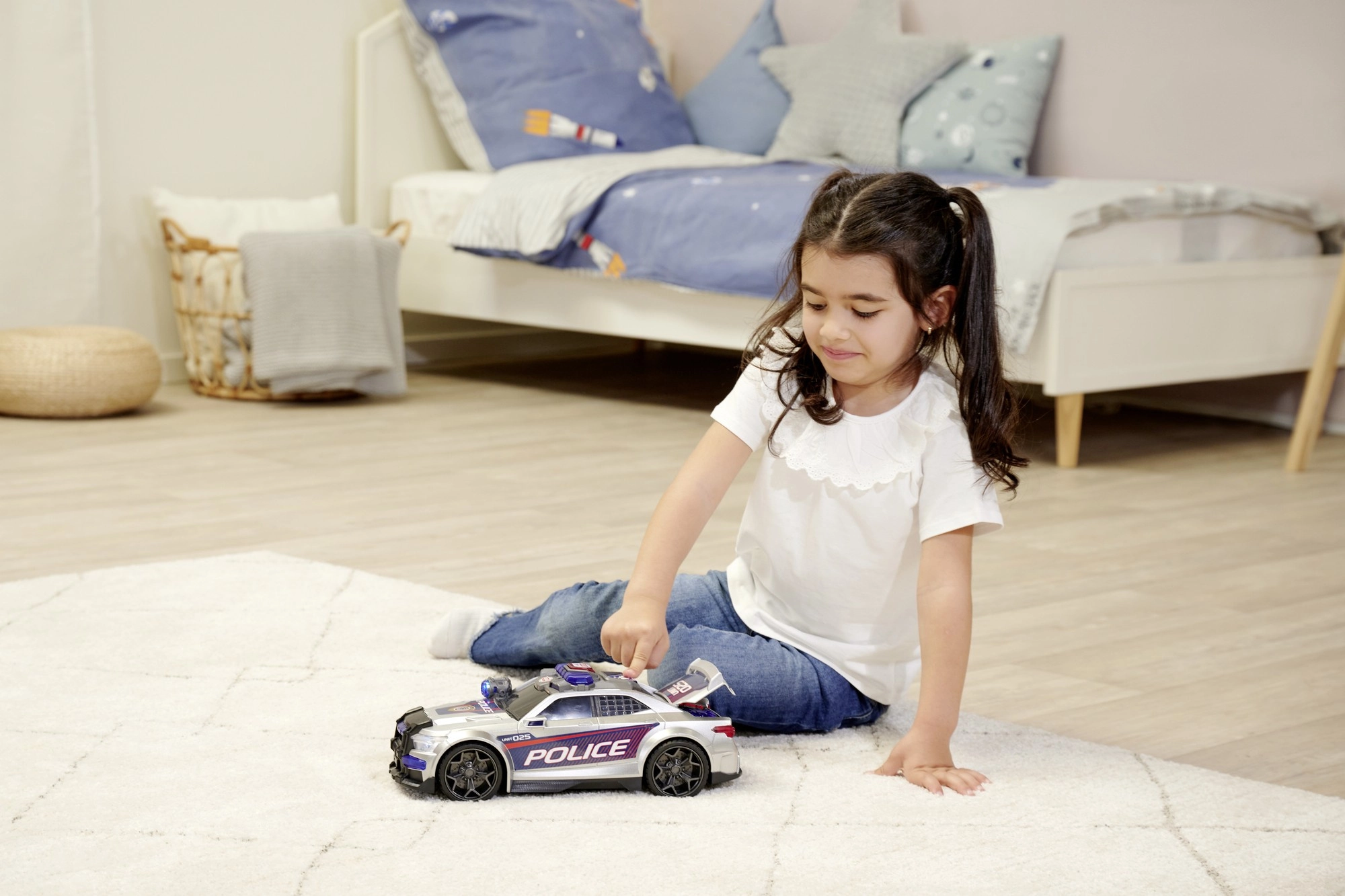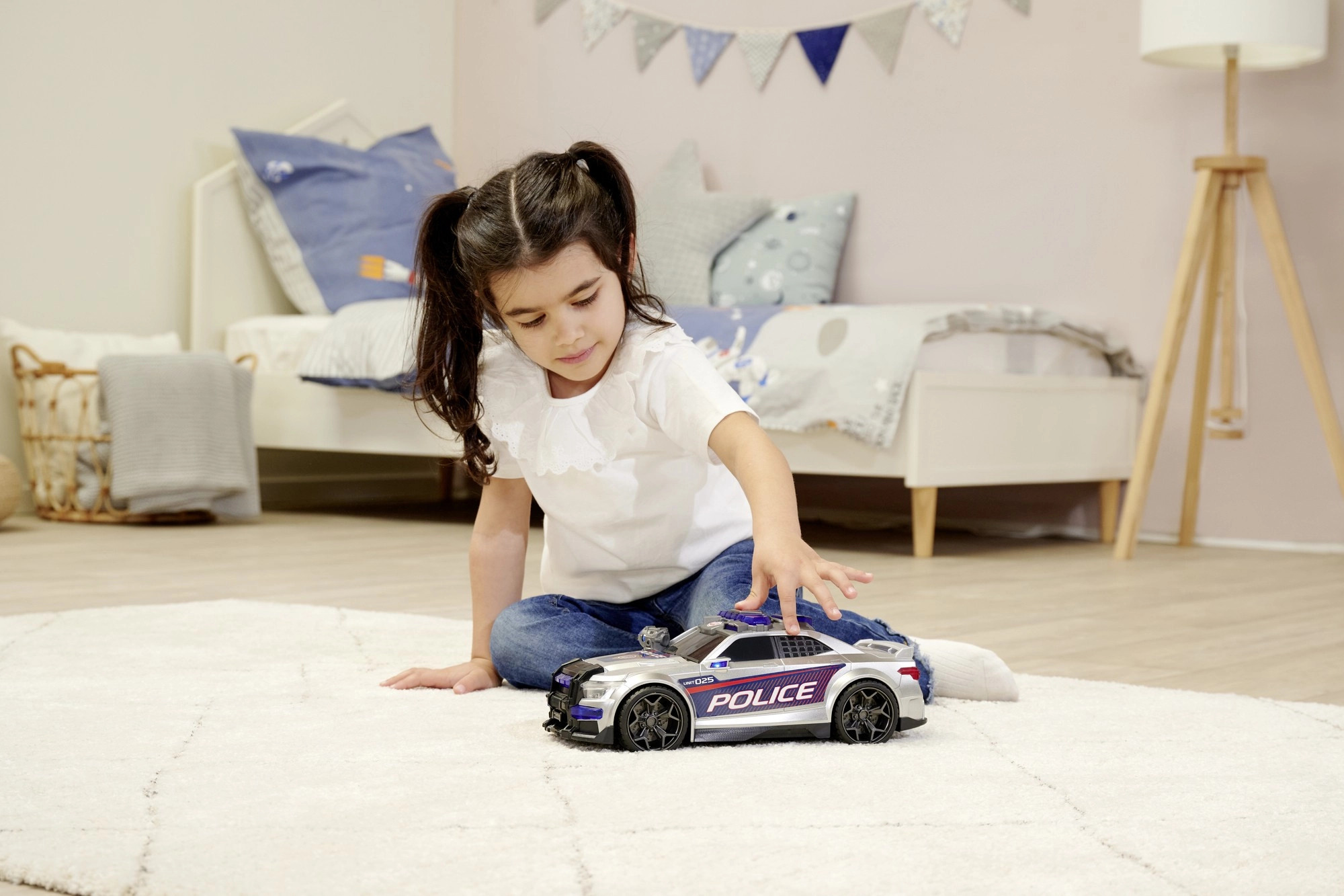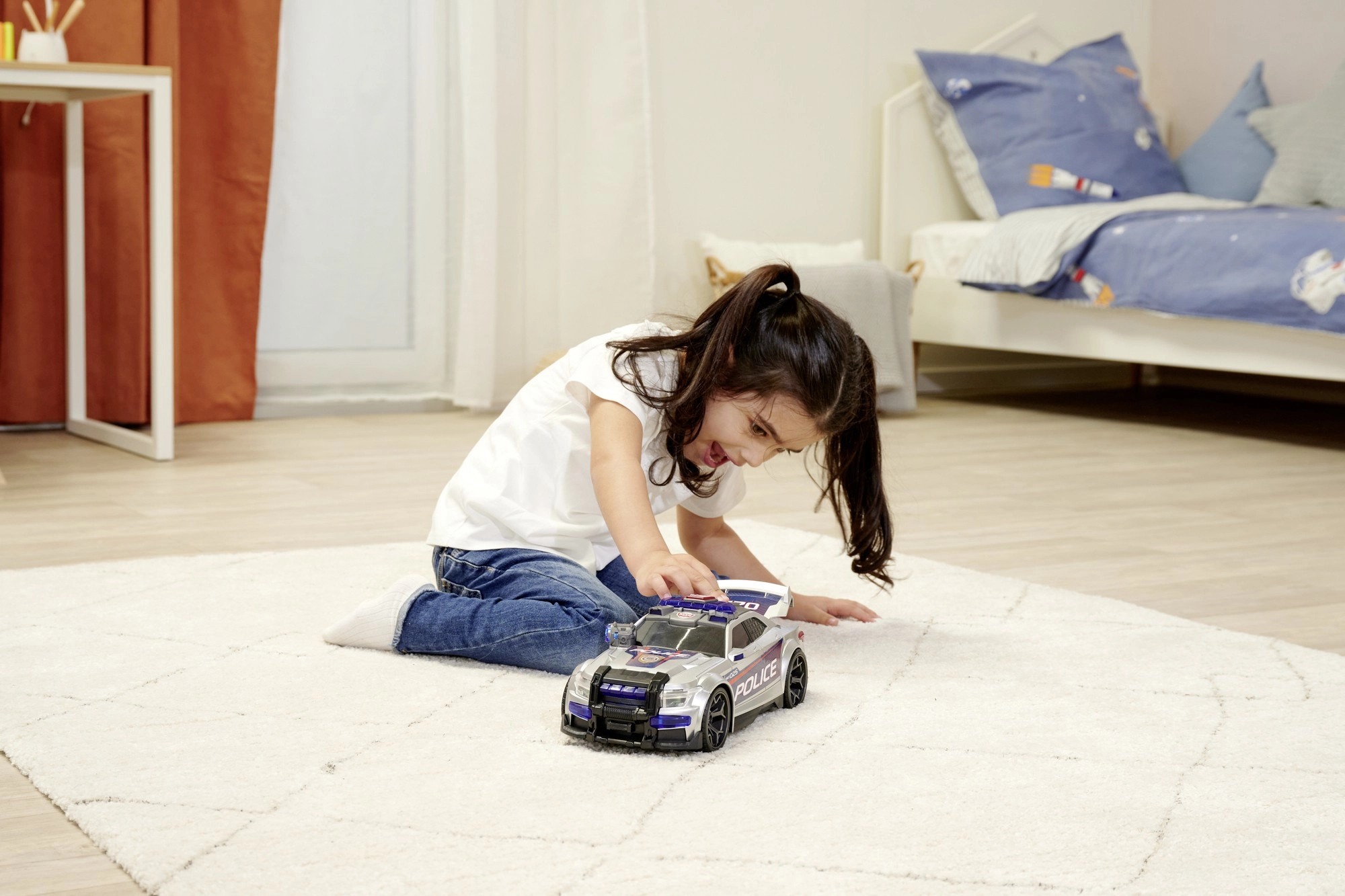 A Street Force rendőrautó ezüst-kék dizájnjával, feltűnő POLICE feliratokkal, valósághű fényhíddal és strapabíró kerekekkel kelti fel a figyelmet. A gyerekek értékelni fogják az egyszerű kezelést – elég megnyomni a tetőn lévő gombot, és fények és hangok teremtik meg a bevetés hangulatát.