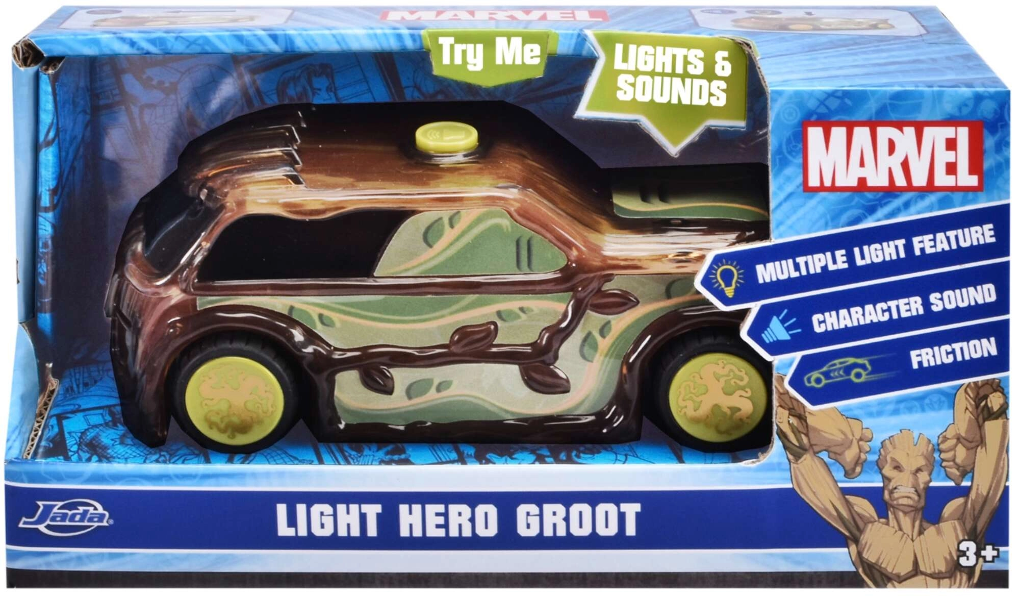 Fedezd fel az akciódús kisautót GROOT motívummal a MARVEL-től, amely ötvözi az interaktív fény- és hanghatásokat az eredeti, természet ihlette dizájnnal, fára, levelekre és ágacskákra emlékeztető részletekkel. A gyerekek könnyedén aktiválják az effekteket a tetőn lévő sárga gomb megnyomásával, és már indulhatnak is az Avengers-kalandokra.