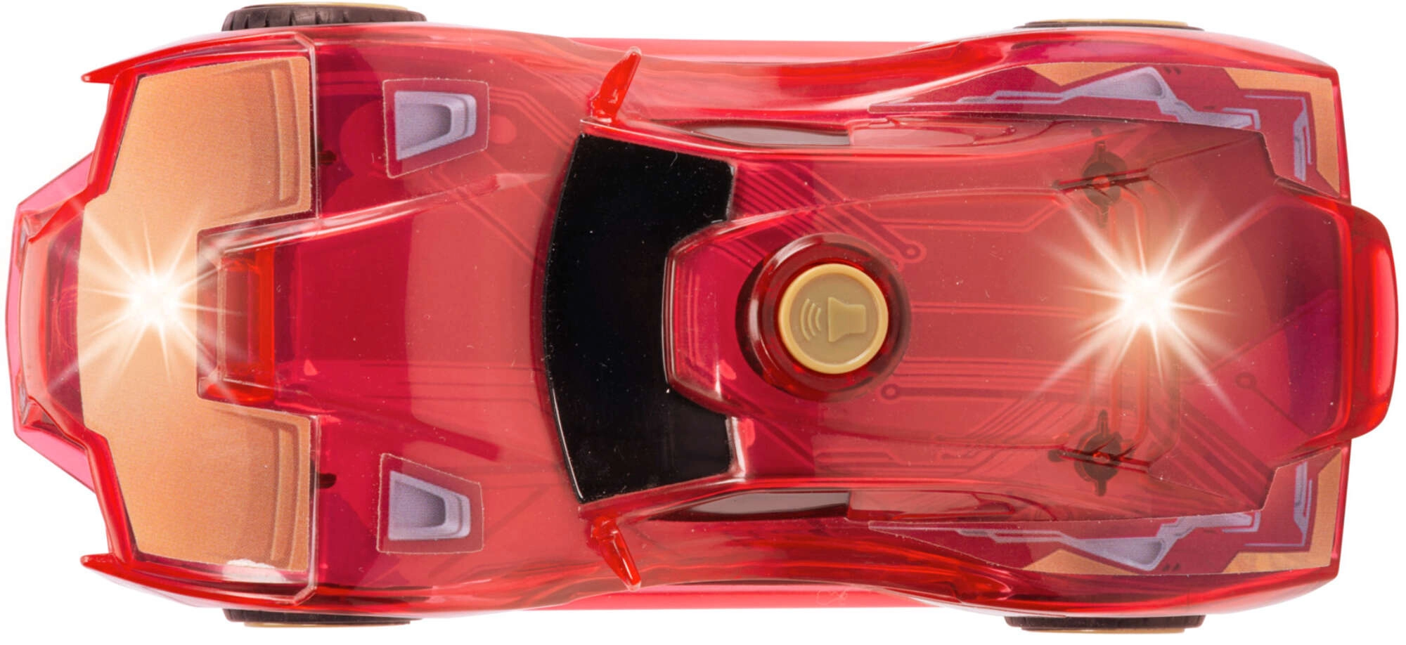 Indulj hősies útra a kompakt, feltűnő piros színű, futurisztikus dizájnú és áttetsző részletekkel ellátott kisautóval. A sárga gomb megnyomása után LED fények gyulladnak fel az egész járművön, és valósághű autó- és karakterhangok szólnak, serkentve a képzeletet és a szórakozást.