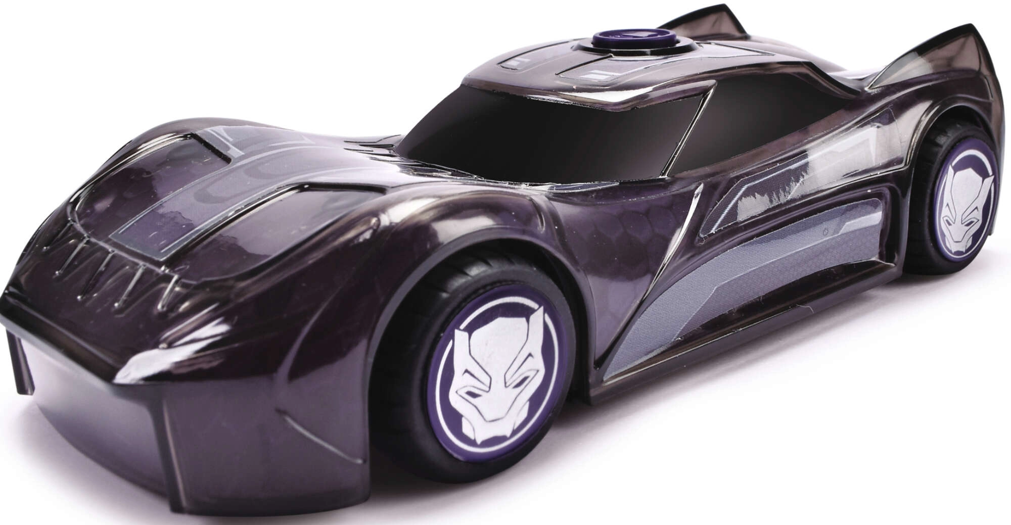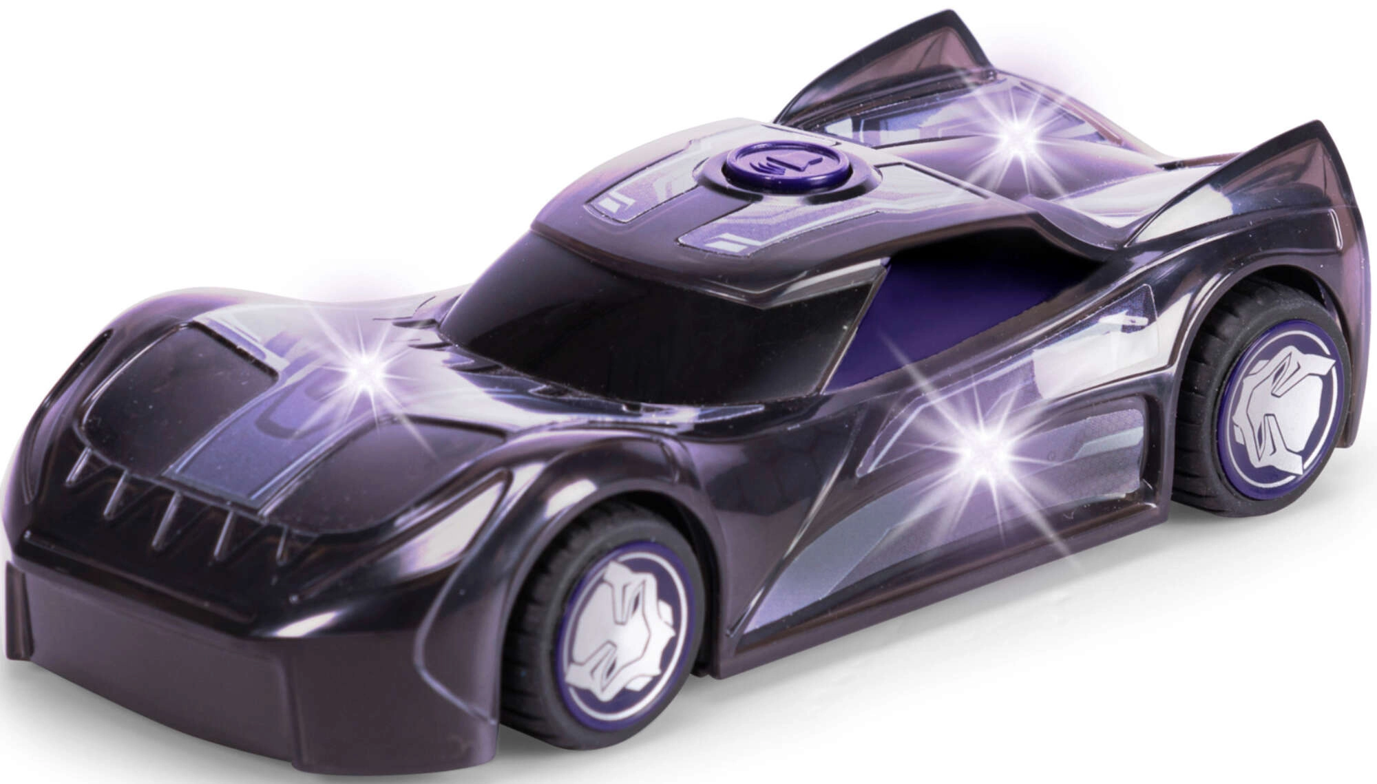 Vágj bele az akciódús vezetésbe a MARVEL Fekete Párduc kisautóval. A maszk motívumaival és futurisztikus vonalakkal díszített karosszéria tökéletesen visszaadja a kedvelt hős stílusát. A lila gomb megnyomására fény ragyogja be a teljes karosszériát, és autentikus hangok szólalnak meg az autótól és a karaktertől a még nagyobb játékélményért.