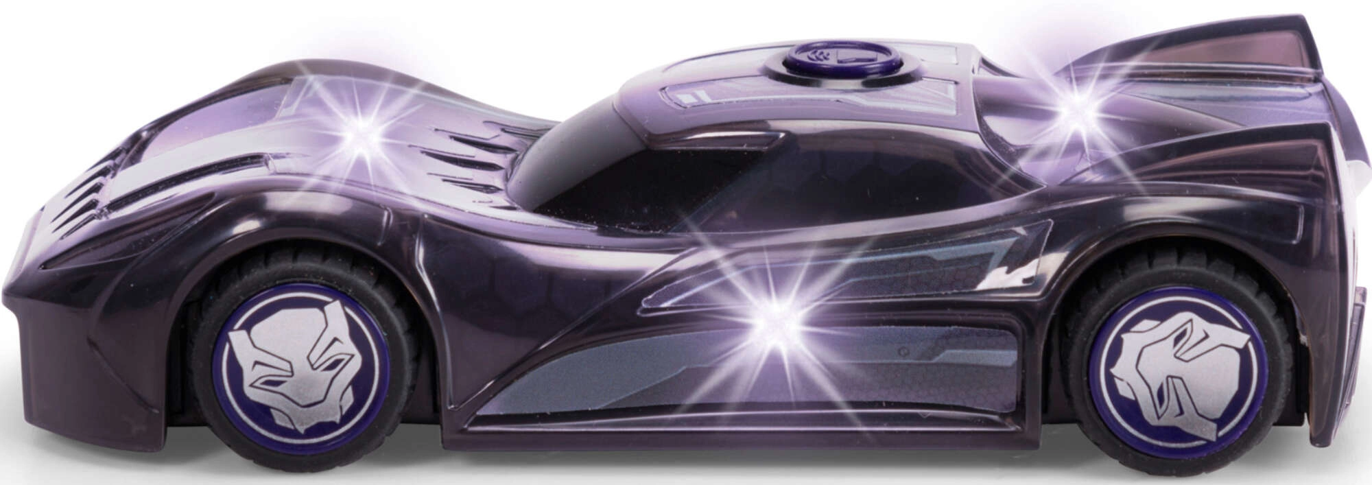 Erős LED-effektek világítják meg a kisautót, és kiemelik a BLACK PANTHER szuperhősös megjelenését – ideális esti játékhoz és akciójelenetekhez.