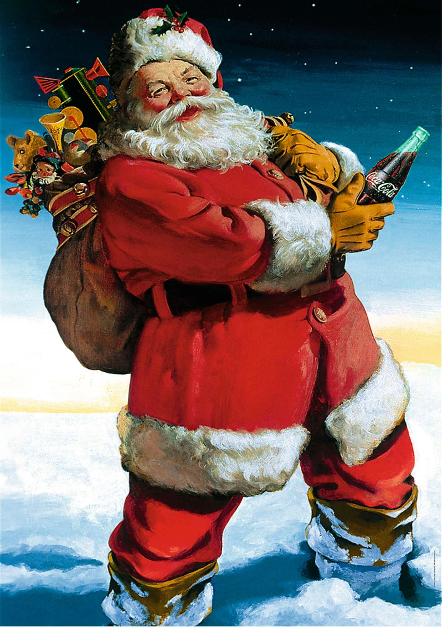 Élvezze az ünnepi hangulatot a TREFL kirakóval, a COCA‑COLA reklámból ismert ikonikus Mikulás motívummal. A készlet 1000 darabból áll, minőségi, erős kartonból készül, precíz kivágással a sima kirakáshoz. Az elkészült kép mérete 68,3 × 48 cm, a kirakó környezetbarát – FSC tanúsítvánnyal és komposztálható csomagolási elemekkel.