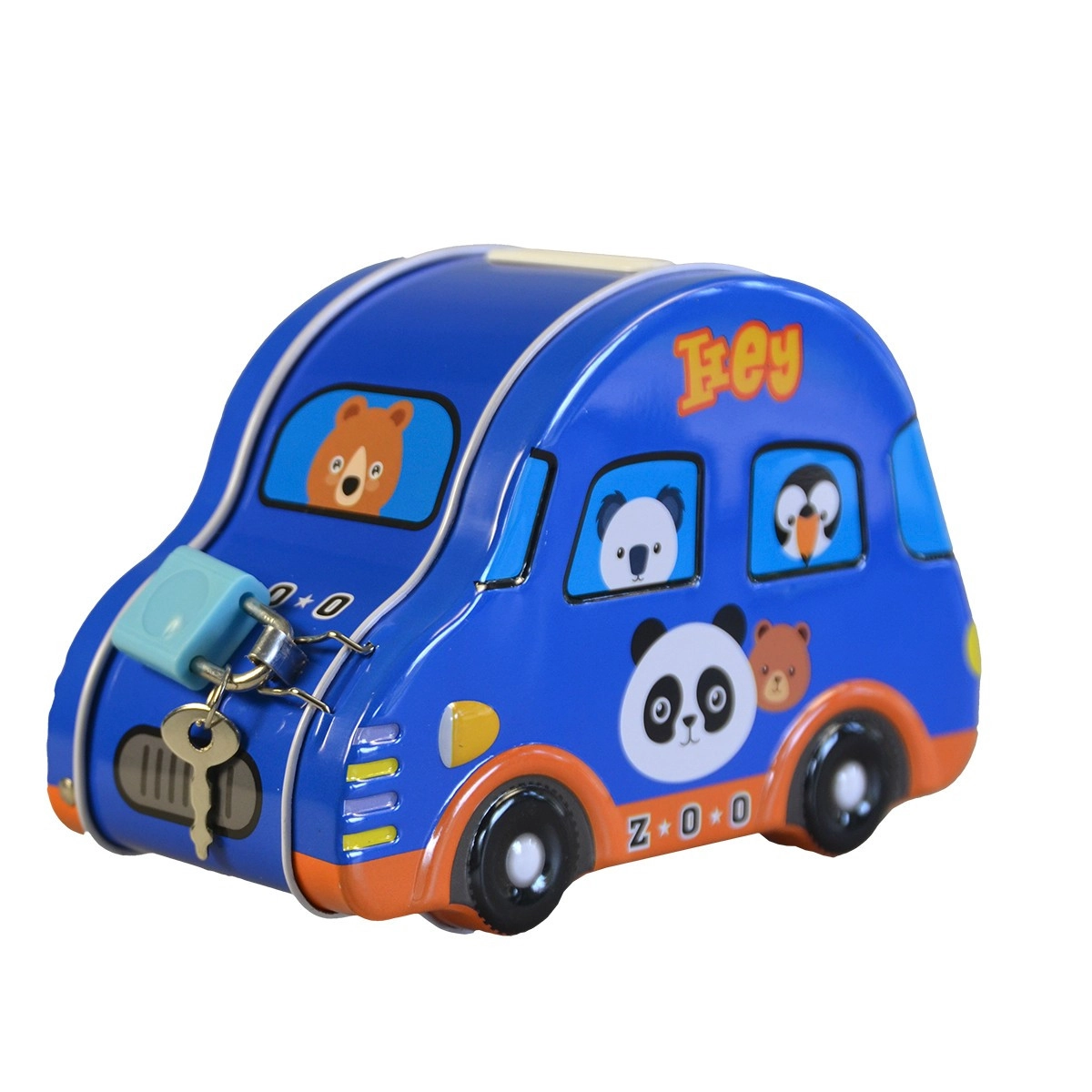 Ez a gyerekeknek szánt, autó alakú persely a játékos dizájnt praktikus védelemmel ötvözi. A fém kivitel tartós, a színes, állatos nyomatok pedig első pillantásra magukra vonják a figyelmet. Felül található a nyílás az érmék bedobásához, hátul vagy elöl pedig egy kis lakat kulcsokkal a megtakarítások biztonságáért.