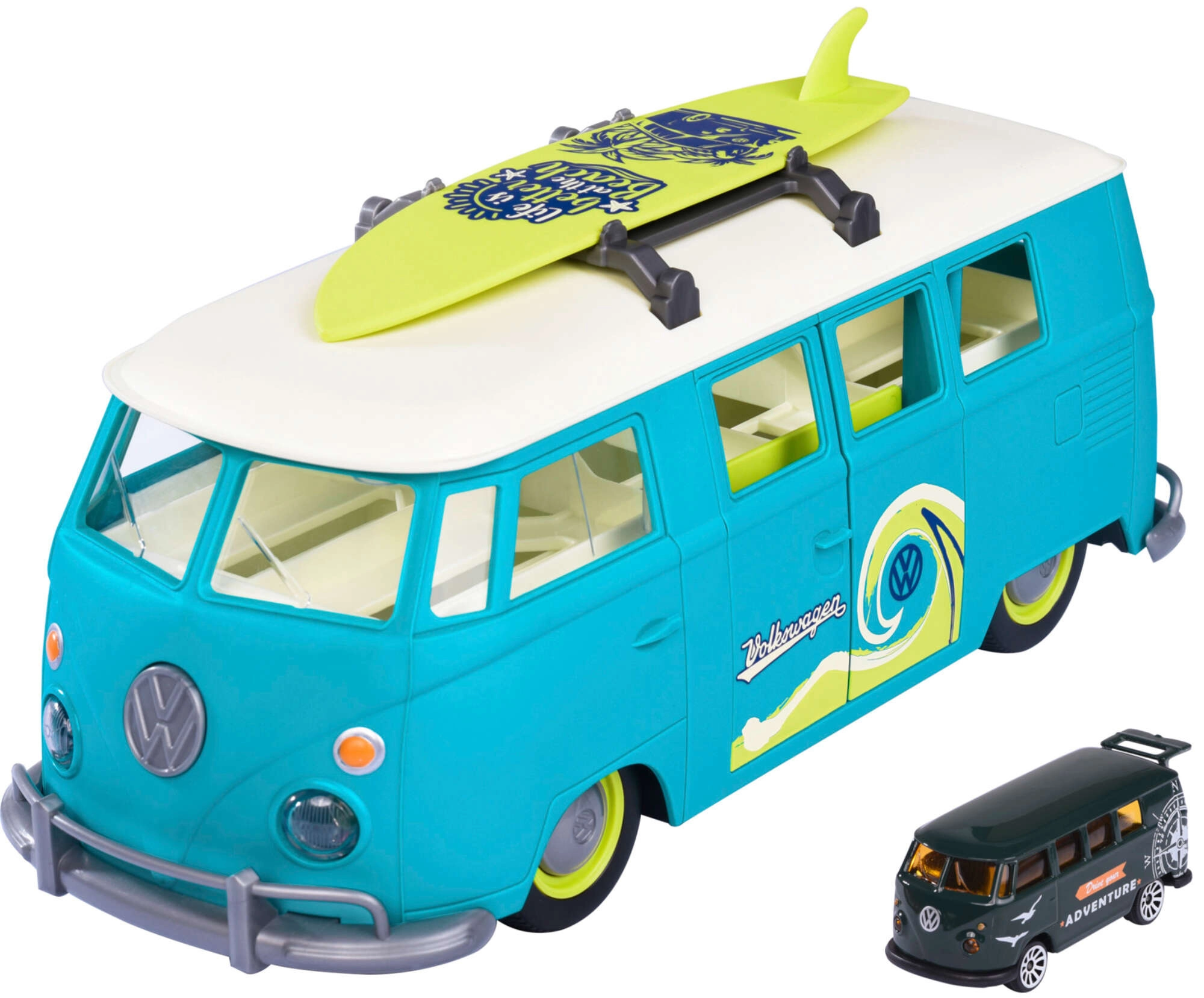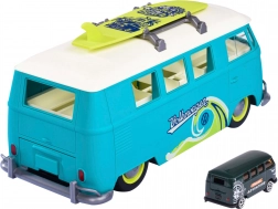 A tetőn található lecsatolható szörfdeszka és a T1 retro stílusú, részletgazdag karosszéria a kis szörfösöknek és a gyűjtőknek egyaránt örömöt okoz.