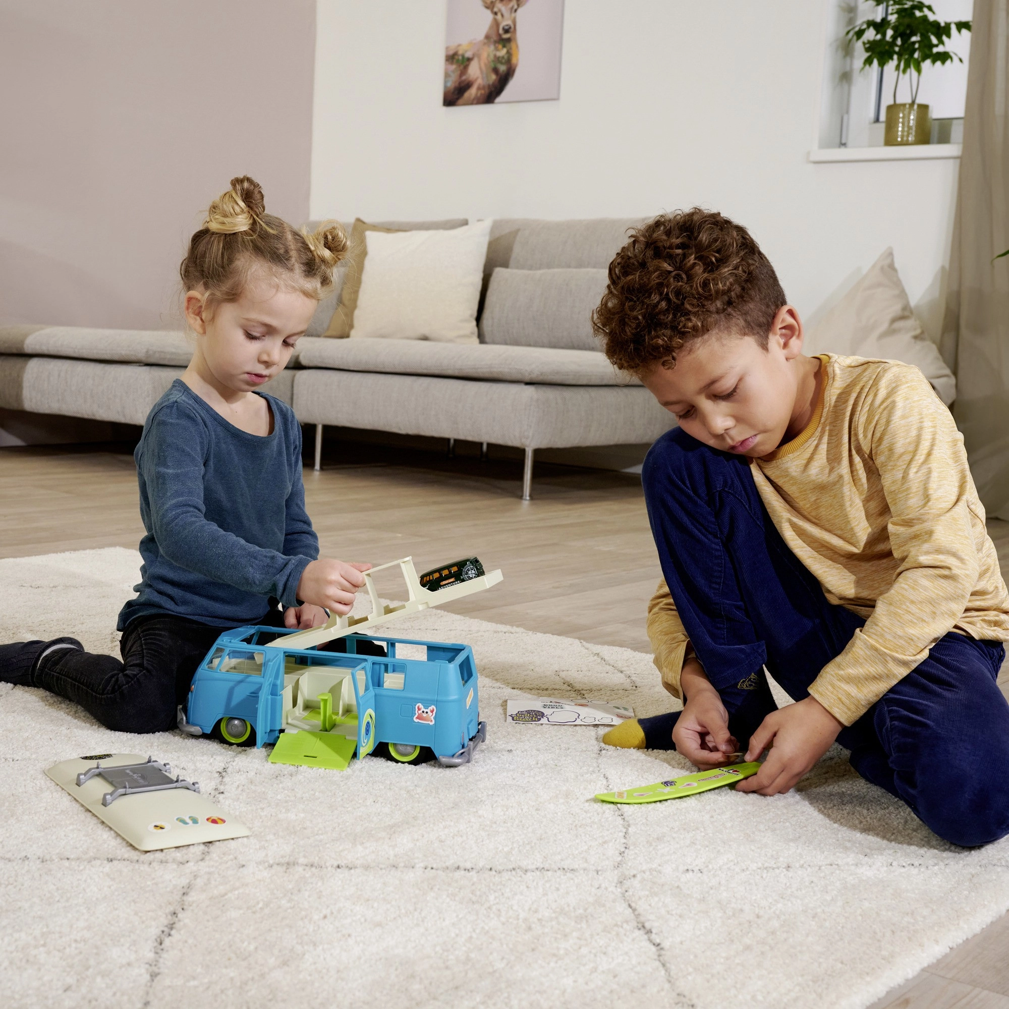 A tető levehető, a tetőcsomagtartón lecsatolható szörfdeszka található, a hátulján pedig felnyitható fedél „motortérrel”. A strapabíró műanyag kivitel alkalmas a mindennapi játékra, és fejleszti a finommotorikát és a képzelőerőt 3 éves kortól.