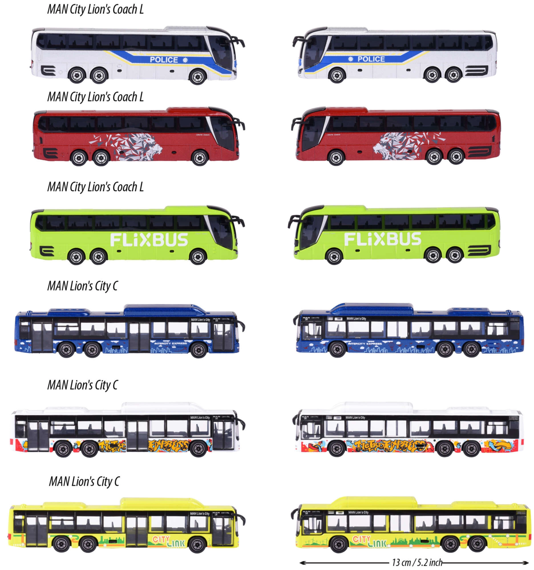 A MAN Lion's City C rendőrségi kivitelű, fém autóbusz modellje örömet szerez kicsiknek és nagy gyűjtőknek egyaránt. Szürke kivitel kék csíkkal, minőségi fém karosszéria műanyag részletekkel és szabadon forgó kerekekkel az egyenletes haladásért sík felületen. A Majorette márka bevált minősége a Majorette Trailer sorozatból.