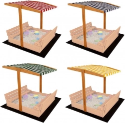 Praktikus tető gyerek homokozóhoz 120 × 120 cm méretben, amely hatékony védelmet nyújt a nap és az eső ellen, és stílust ad a kertnek. A masszív fa szerkezetnek és a állítható vászonnak köszönhetően a tető könnyen pozícionálható, vagy teljesen lehúzható, így a homokozót lezárhatja és megóvhatja a szennyeződéstől és az állatoktól. A gyors összeszereléshez minden elő van készítve előfúrt furatokkal és gyermekbarát, biztonságos impregnálással.