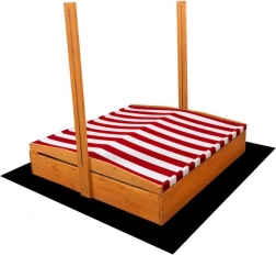Élvezze a gondtalan kerti játékot. Ez a 120 × 120 cm-es homokozó tető strapabíró fa szerkezetet kombinál minőségi, piros-fehér csíkos vászonnal. Árnyékot és védelmet nyújt az enyhe eső ellen, és teljesen lehúzható a peremig, hogy a homokozó tiszta és védett maradjon.