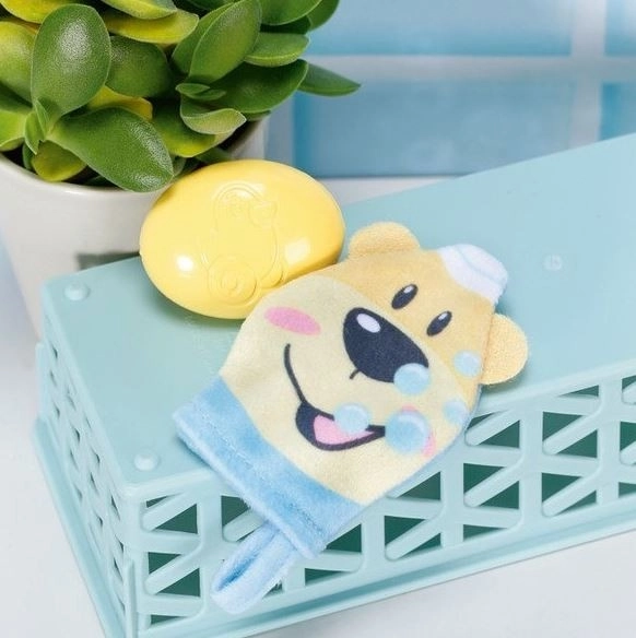 - Medve alakú mosókesztyűt, amely ideális a kíméletes tisztításhoz.