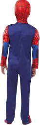 Ikonikus piros és kék kivitel pókhálómintával és mellkasi emblémával, amely valódi szuperhős-megjelenést kölcsönöz a jelmeznek.