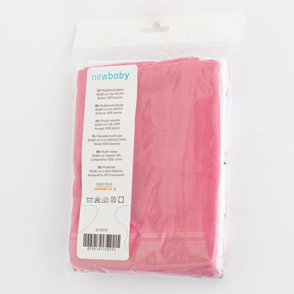 Muszlin pelenkák 60 × 80 cm, 3 darabos szett lányoknak NEW BABY