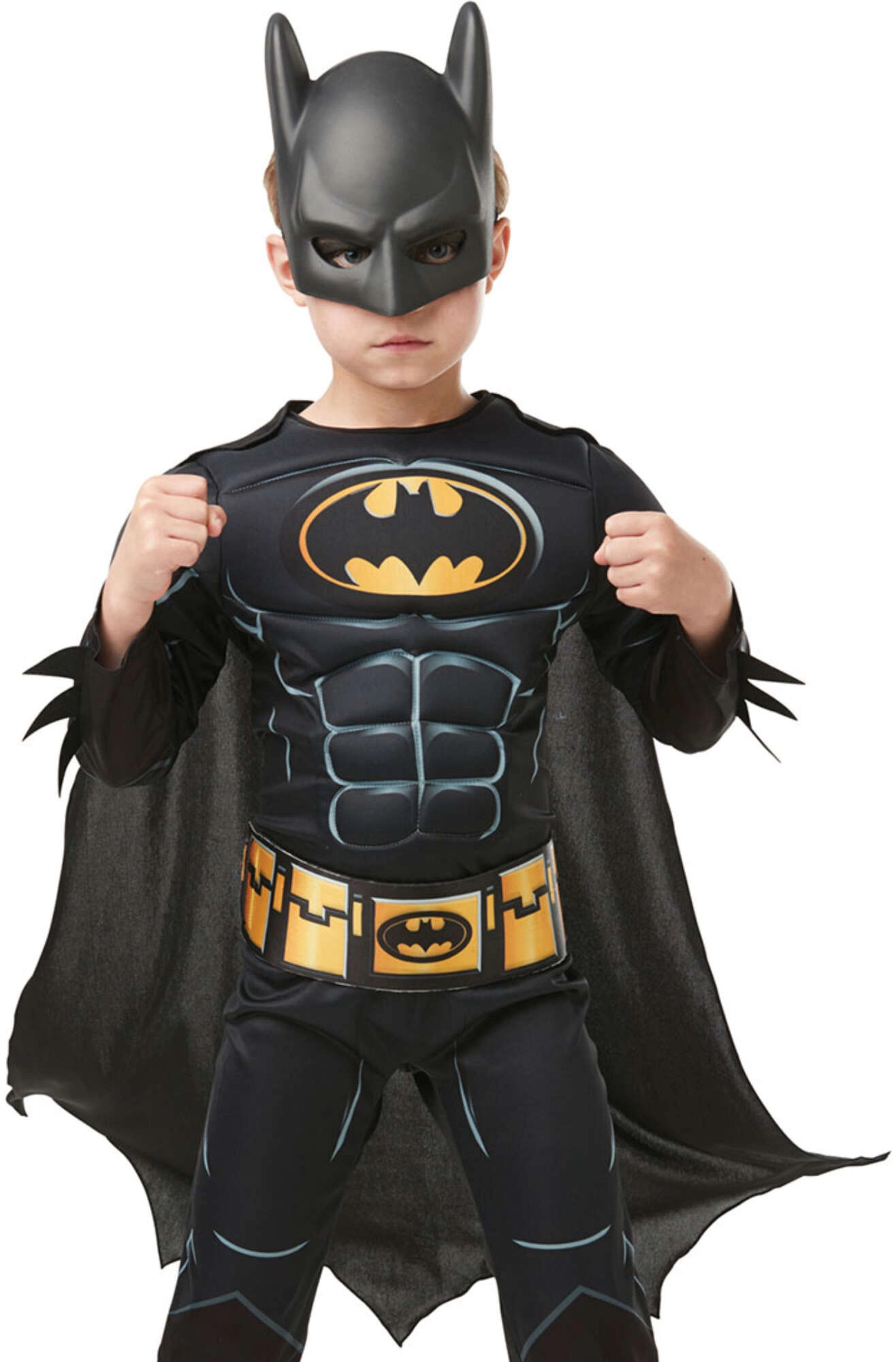 Az hivatalosan licencelt DC COMICS BATMAN jelmez bátor városvédővé változtatja gyermekét. A könnyű és kényelmes anyag látványos izompáncél-nyomattal, sárga utility „övvel” és rögzített köpennyel biztosítja a hatásos megjelenést és a kényelmes mozgást.