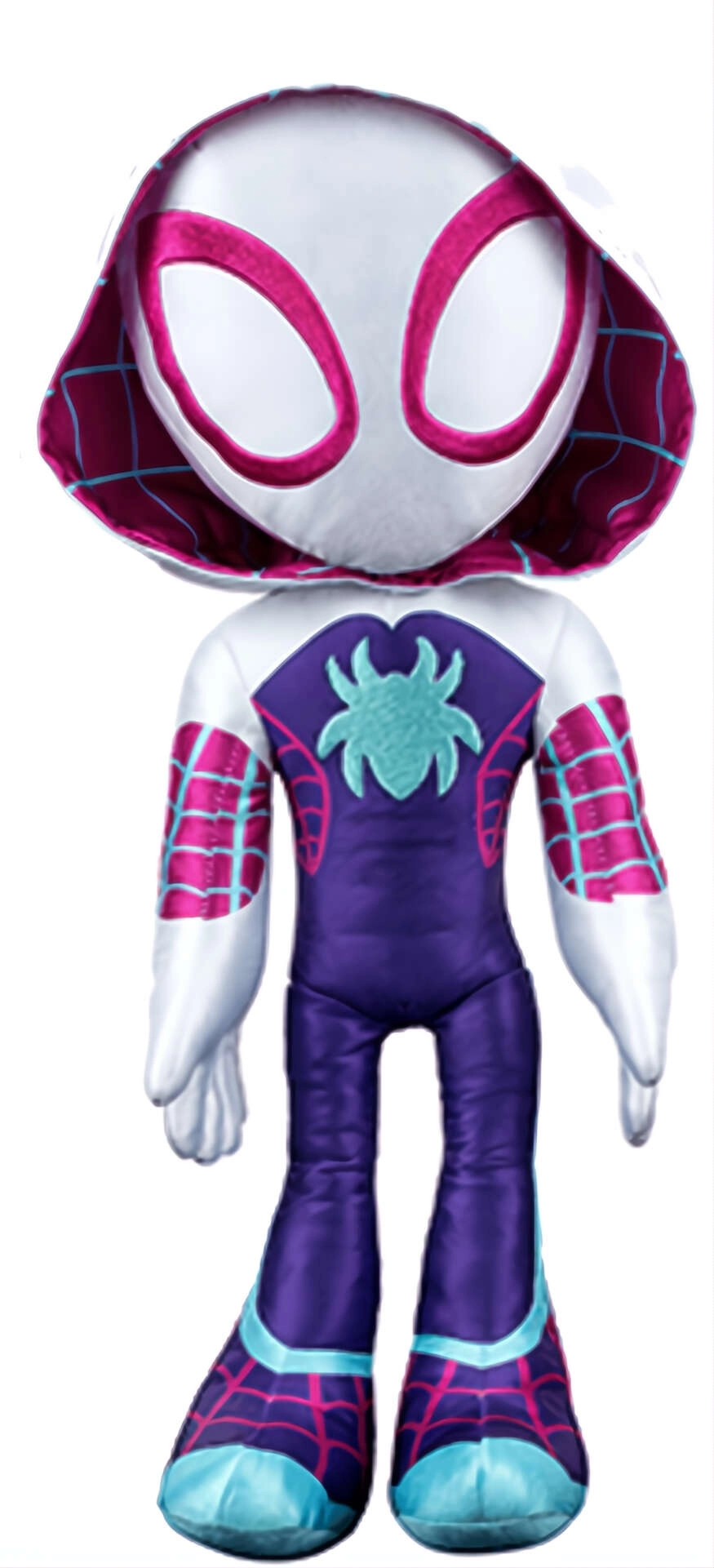 A népszerű hősnő, Ghost-Spider (Gwen Stacy) most puha plüssfiguraként érkezik a Spidey és csodálatos barátai sorozatból. A minőségi kivitelezésnek, a hímzett arcrészleteknek és a jellegzetes fehér öltözetnek rózsaszín-kék akcentusokkal köszönhetően könnyen felismerhető, és készen áll a mindennapi játékra és ölelgetésre.