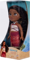 A Disney MOANA 2 film által inspirált MOANA baba a gyerekeknek a kedvelt hősnő hiteles megjelenését hozza el: hosszú, dús, formázható haj, kifejező sötét szemek és hagyományos polinéz jelmez – világos top piros mintákkal és piros szoknya trópusi mintával. A kagyló nyaklánc kiemeli az óceánhoz fűződő kapcsolatát.