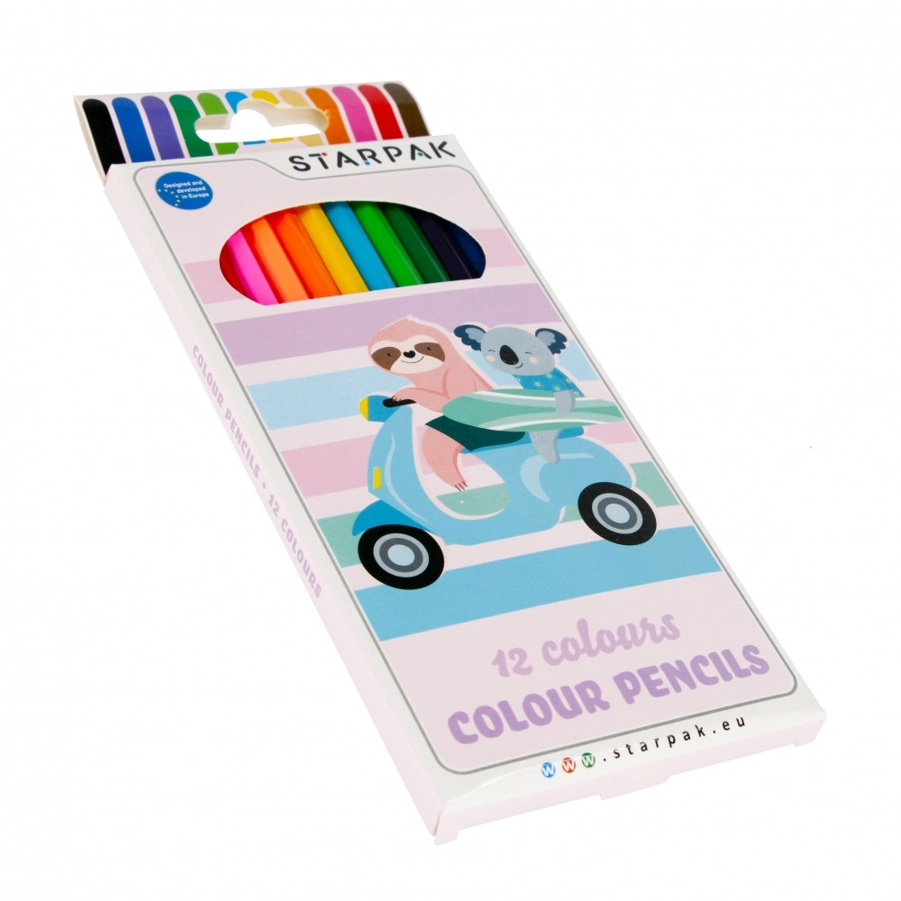 Vidám színesceruza-készlet lajhár motívummal, amely örömet szerez kicsi és nagy alkotóknak. 12 élénk színt tartalmaz, kényelmes 18 cm hosszúsággal a könnyű fogásért, és 3 éves kortól ajánlott. Ideális iskolába, óvodába és otthoni alkotáshoz.