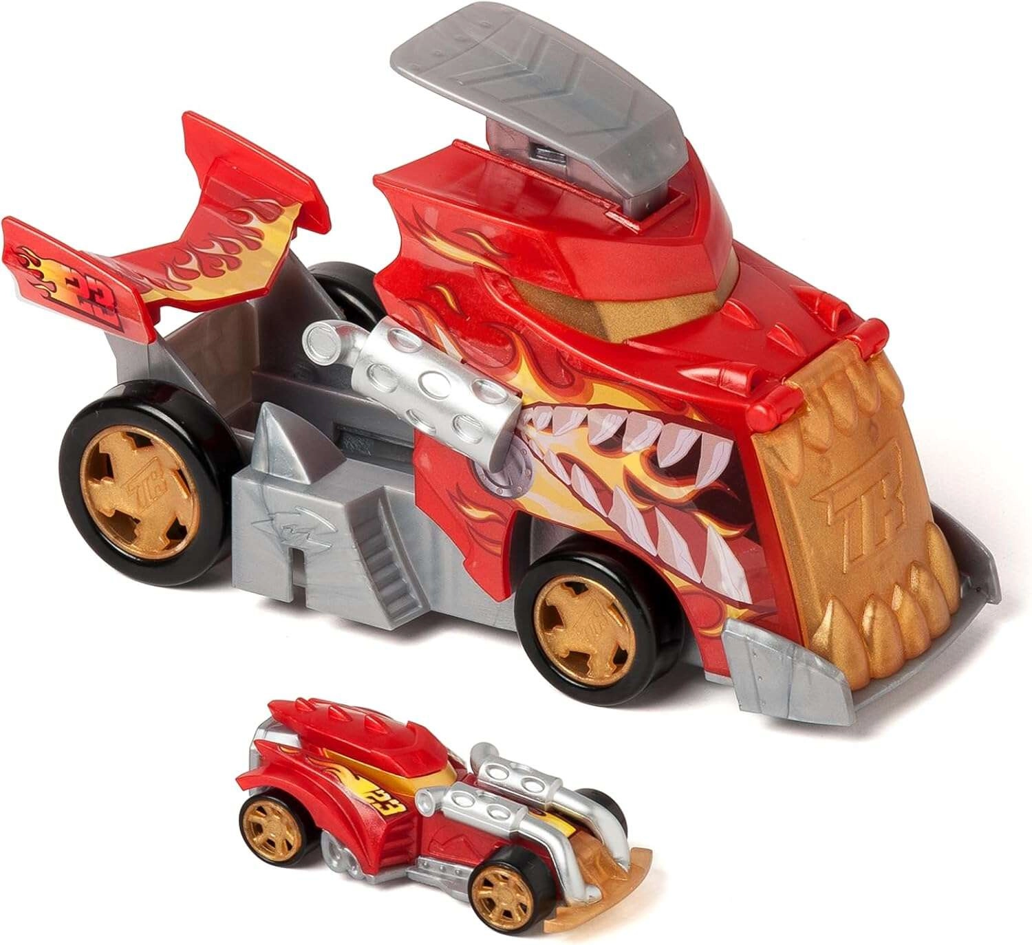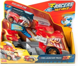 A T-Racers Mix ’N Race Fire Launcher Truck készlet dinamikus versenyzést és szabad alkotást kínál a gyerekeknek. A sárkány stílusú teherautó elszállítja a kisautókat, és a beépített kilövőrámpának köszönhetően villámgyorsan előre repíti őket. A csomagban egy exkluzív versenyautó is található, amelynek alkatrészei kombinálhatók a Mix ’N Race sorozat többi modelljével.