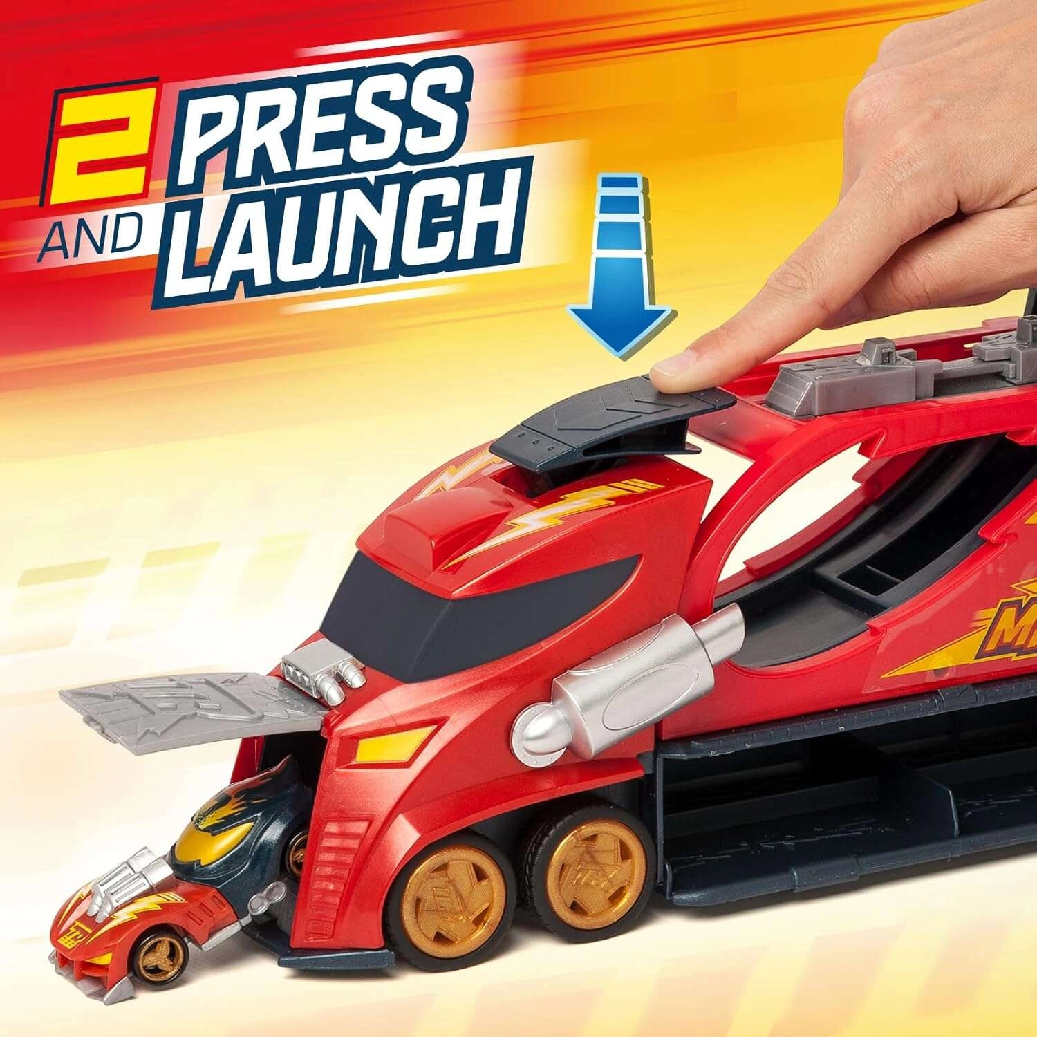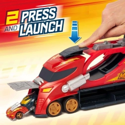 A Thunder Truck hordtáskaként szolgál akár 3 kisautóhoz, és egyben erőteljes kilövő a villámgyors futamokhoz.