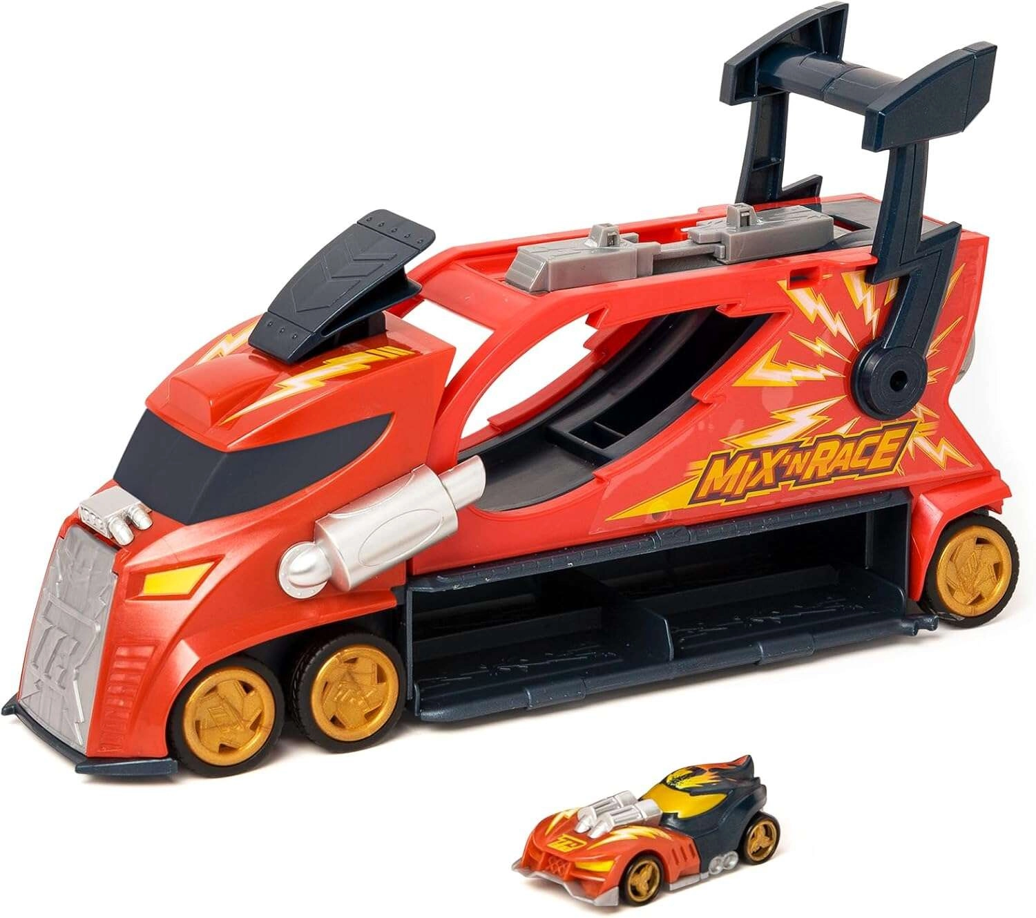 A Thunder Truck akciódús versenyeket és okos tárolást hoz a gyerekszobába. Praktikus szállítóként szolgál három T‑RACERS autóhoz, és egyben nagy teljesítményű kilövő rámpa a villámrajthoz. A Mix n Race rendszernek köszönhetően az autók részei szabadon keverhetők, így egyedi kombinációk hozhatók létre.