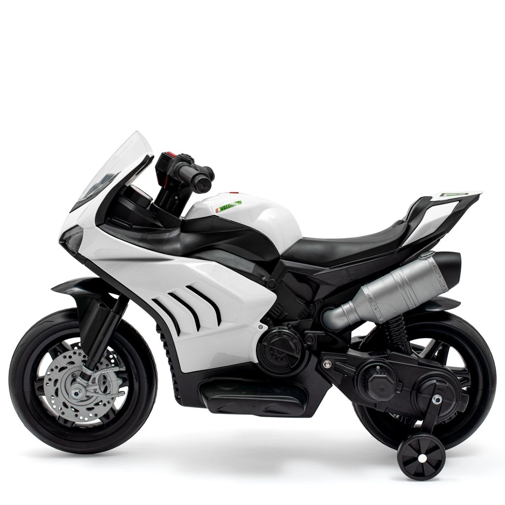 Az elektromos Supersport motor kis, kezdő motorosoknak készült, akik szeretnék átélni az igazi motorozás élményét. A gázpedálnak és az előre-hátra menet gombnak köszönhetően nagyon könnyen kezelhető, és támogatja a koordináció és a finommotorika fejlődését. A segédkerekek stabilitást és biztonságérzetet nyújtanak az első utak során.