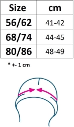 A sapka a fülekre simuló kialakítású, és a zsinóroknak köszönhetően könnyen a gyermekre igazítható, így biztosan a helyén marad mozgás közben is, ugyanakkor nem szorít. Az OEKO‑TEX STANDARD 100 tanúsítvány garantálja, hogy az anyag biztonságos a gyermekek számára.