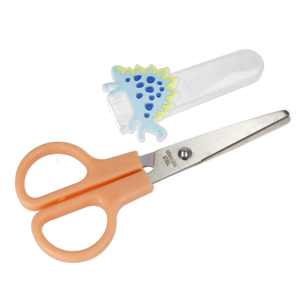 Adj örömet a kreatív alkotásban a biztonságos és vidám Dino ollóval. Az olló kompakt, 12 cm hosszú, könnyen tartható, és a lekerekített végeknek köszönhetően jobban véd vágás közben papír és könnyű anyagok esetén. A védőtok a pengéket lefedi szállítás és tárolás során.