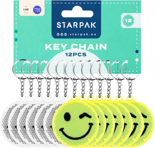Vidám, fényvisszaverő smiley medál nagyobb biztonságért és szórakozásért útközben. Körülbelül 7 cm átmérőjének és fényvisszaverő felületének köszönhetően félhomályban és sötétben is növeli a láthatóságot. Választható 2 változat, a medálon fém karika és lánc van, így könnyen rögzíthető kulcshoz, hátizsákhoz vagy táskához. 12 darabos csomagolás, az ár 1 db-ra vonatkozik. 3 éves kortól ajánlott.