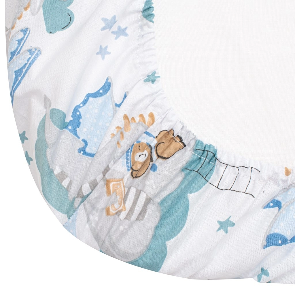 A lepedő klasszikus, nem elasztikus pamut, ezért gyártási mérete körülbelül 50 × 80 cm, hogy felhúzás után tökéletesen illeszkedjen a 35 × 75 cm matracra az alsó oldalról is. Könnyen kezelhető, 40 °C-on mosható, így praktikus segítőtárs utazáshoz és a babakocsi mindennapi felszereléséhez.