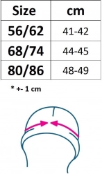 Ez a sapka ideális 56/62-es méretű babáknak, és könnyen összehangolható tavaszi vagy nyári ruhatárukkal.
