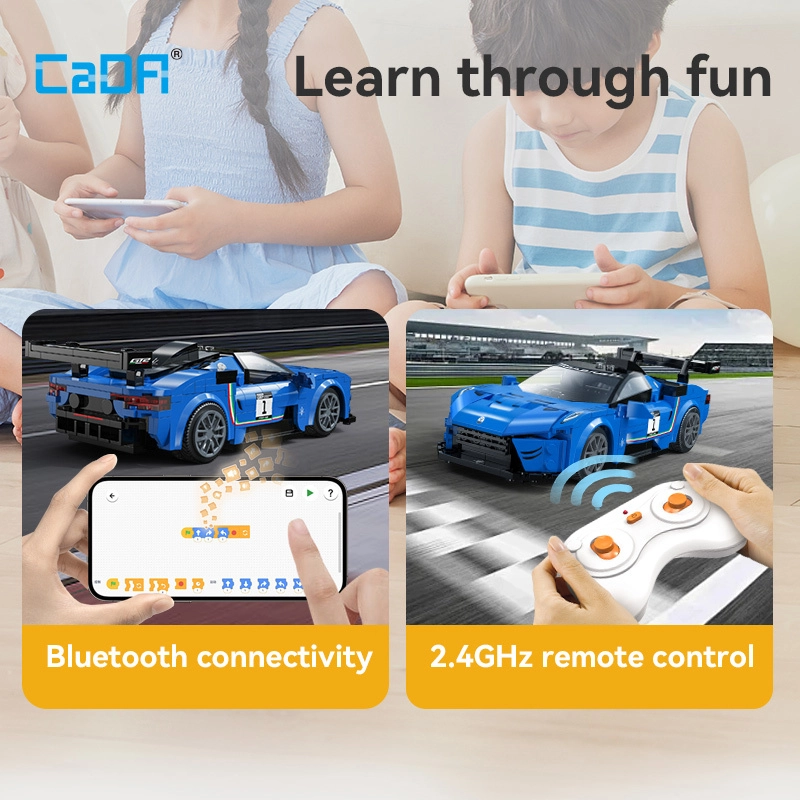 A Dual Mode üzemmódnak köszönhetően az autót irányíthatod a mellékelt 2,4 GHz-es vezérlővel, vagy kényelmesen Bluetooth alkalmazáson (Android/iOS) keresztül, kb. 25 méter hatótávval. A modell akár 3,6 km/h sebességet ér el, kompatibilis más CaDA szettekkel, és kiválóan fejleszti a kézügyességet, a kreativitást és a műszaki gondolkodást.