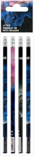 A BICYCLE motívummal díszített 4 darabos, minőségi ceruzakészlet egyaránt örömet szerez iskolásoknak és felnőtteknek. Minden ceruza HB keménységű, 19 cm hosszú, a végén praktikus radírral. Ideális íráshoz és rajzoláshoz, 3 éves kortól ajánlott.