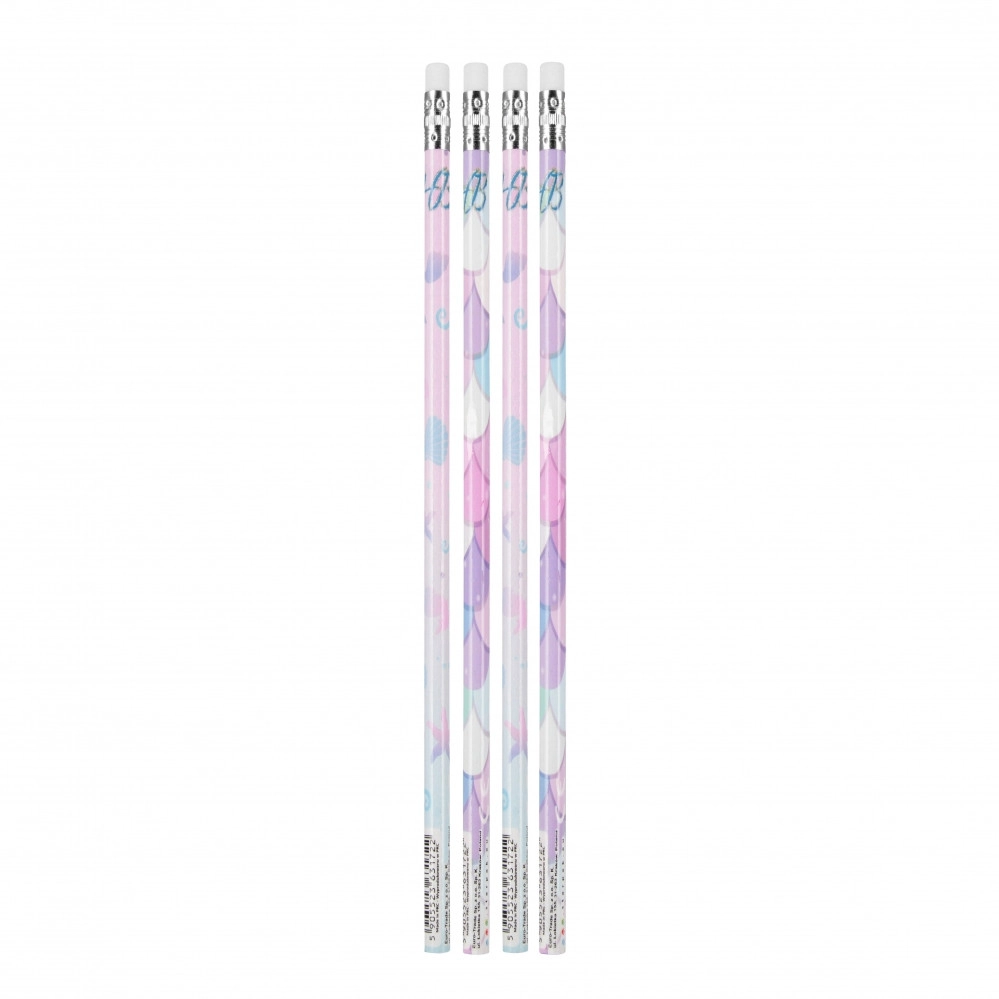 Aranyos, sellő mintás ceruzák, amelyek minden kis művészt és iskolást örömmel töltenek el. A csomagban 4 darab ceruza található beépített radírral, kényelmes, 19 cm-es hosszal és HB keménységgel a mindennapi íráshoz és rajzoláshoz. Ideális iskolai eszköz 3 éves kortól.