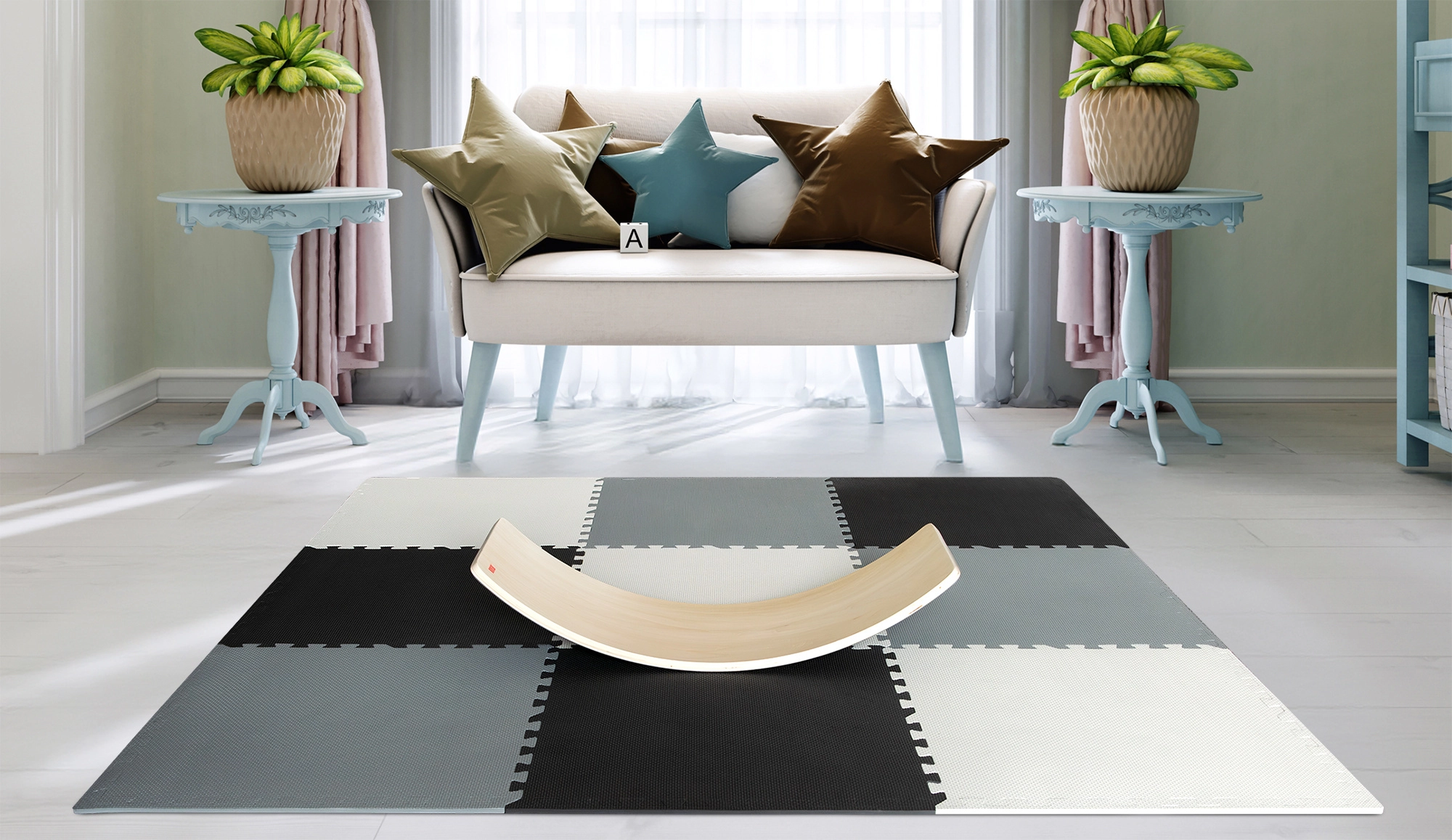 A KREA Balance Board egyensúlyozó deszka a stabilitás természetes fejlesztésére és a core izmok erősítésére készült. A gyerekek rajta állhatnak, hintázhatnak vagy ülhetnek, és játékosan gyakorolhatják az egyensúlyt. Letisztult formája bármely enteriőrbe illik, és ösztönzi a fantáziát – a deszka egy pillanat alatt híddá, alagúttá vagy csónakká válhat.