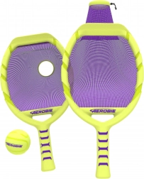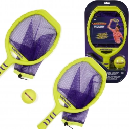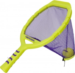 Két ütő neon sárga színben lila hálóval és hozzá illő labdával feltűnő, könnyen észrevehető szettet alkot aktív családi pillanatokhoz, baráti párbajokhoz, valamint az ügyesség és koordináció gyakorlásához. Szünet nélküli móka: a háló segít könnyedén felvenni a labdát a földről, és folytatni a játékot.