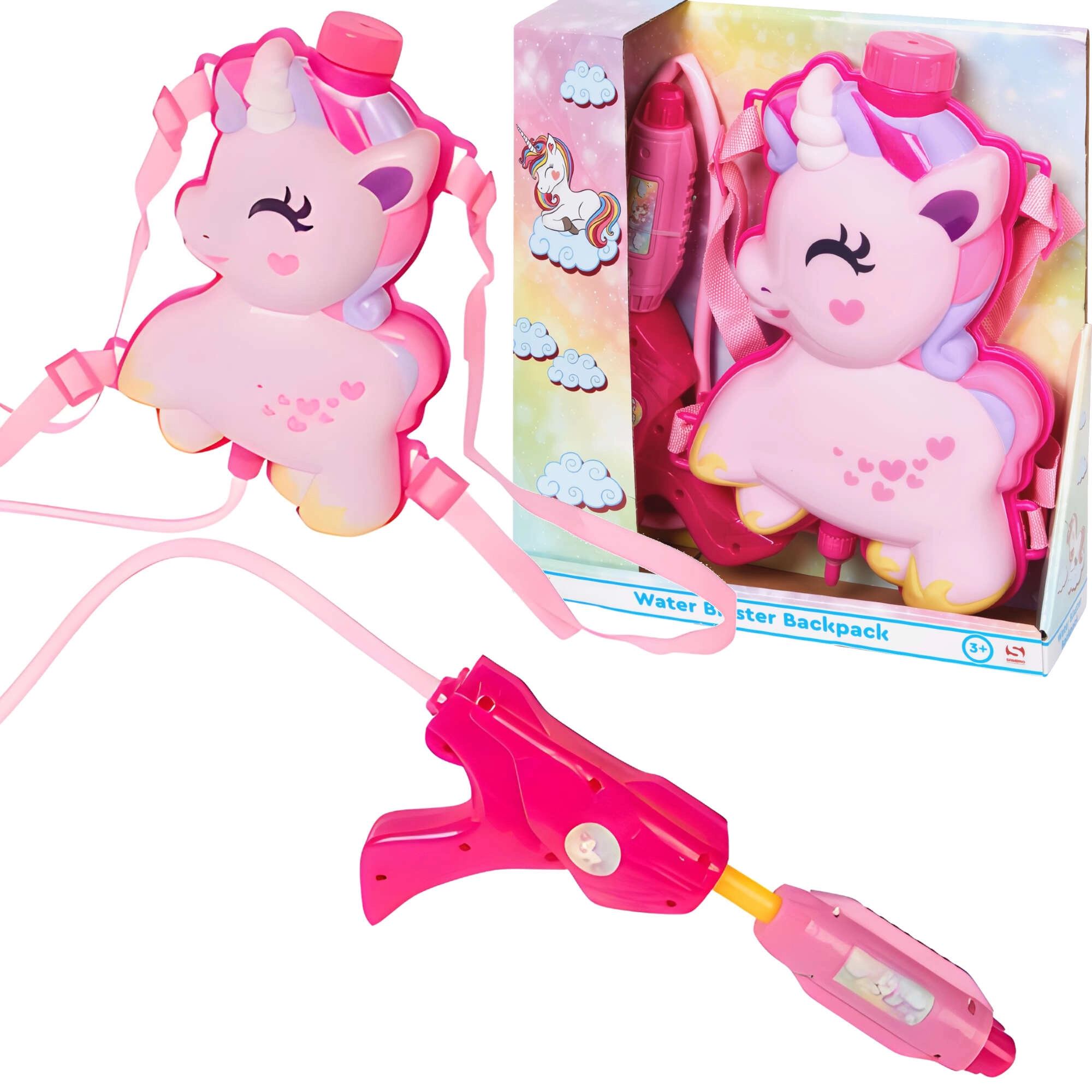 A cuki unikornis alakú hátizsák–tartály és a könnyű kézi szóró, amelyet rugalmas cső köt össze, ideális az aktív játékhoz a kertben, a játszótéren és a vízparton is. A gyerekek értékelni fogják az egyszerű töltést és a kényelmes viselést, a szülők pedig a biztonságos és kreatív szórakozást a friss levegőn.