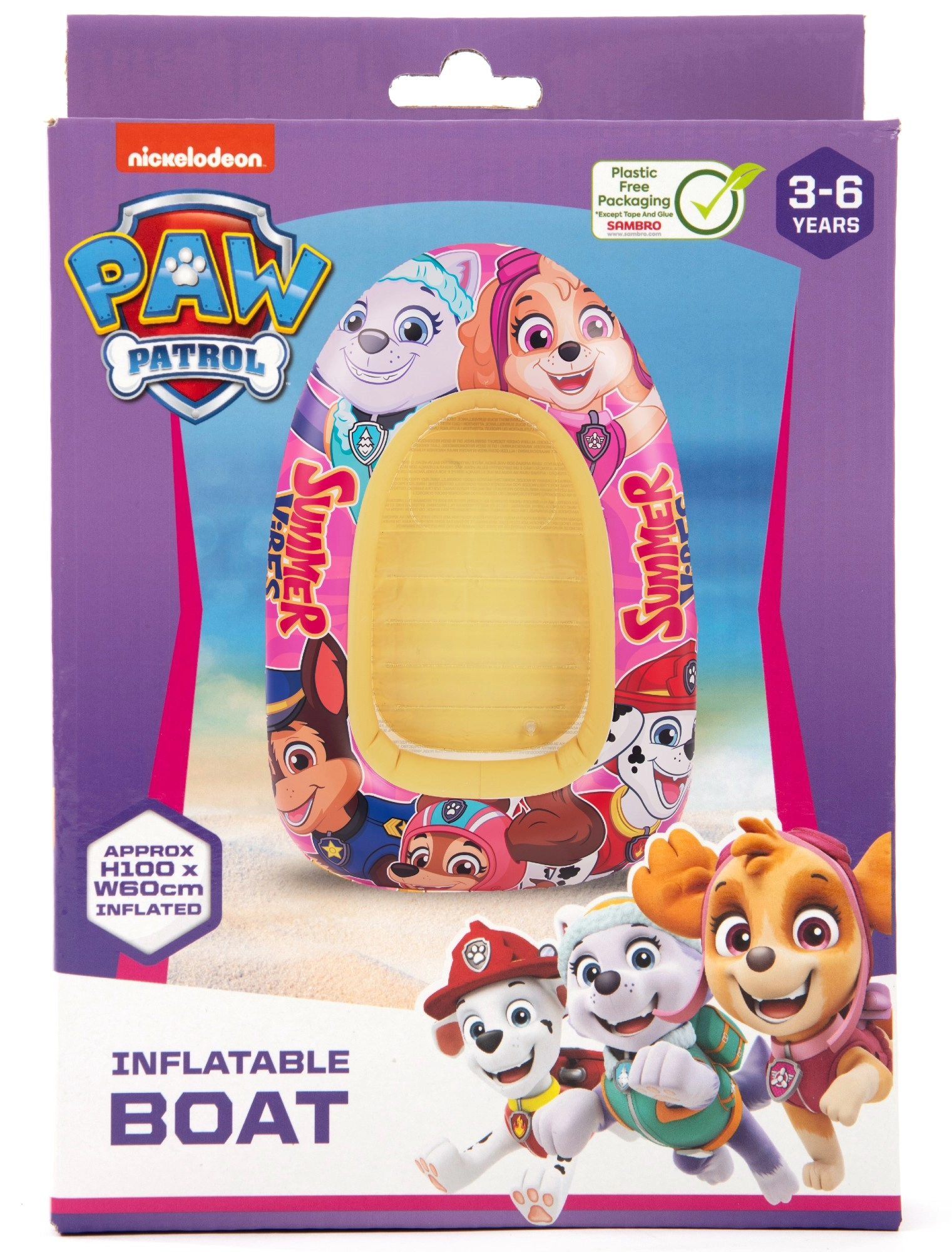 A bájos, PAW PATROL mintás felfújható csónak ideális a gyerekek első vízi kalandjaihoz. Kompakt 100 × 60 cm-es méretet, tartós PVC-t, biztonsági szelepet és puha felfújható aljat kínál a kényelmes és biztonságos vízparti játékhoz.