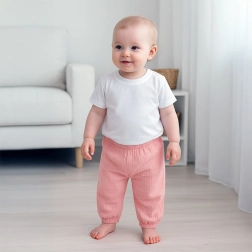 Ez a gyerek szett a maximális kényelmet és a praktikus kivitelezést ötvözi. A pamut póló puha, jól szellőzik, és a finom nyakkivágásnak köszönhetően egész napos viselés során sem nyom. A muszlin nadrág könnyű, strapabíró és kellemes tapintású – aktív gyerekeknek ideális.